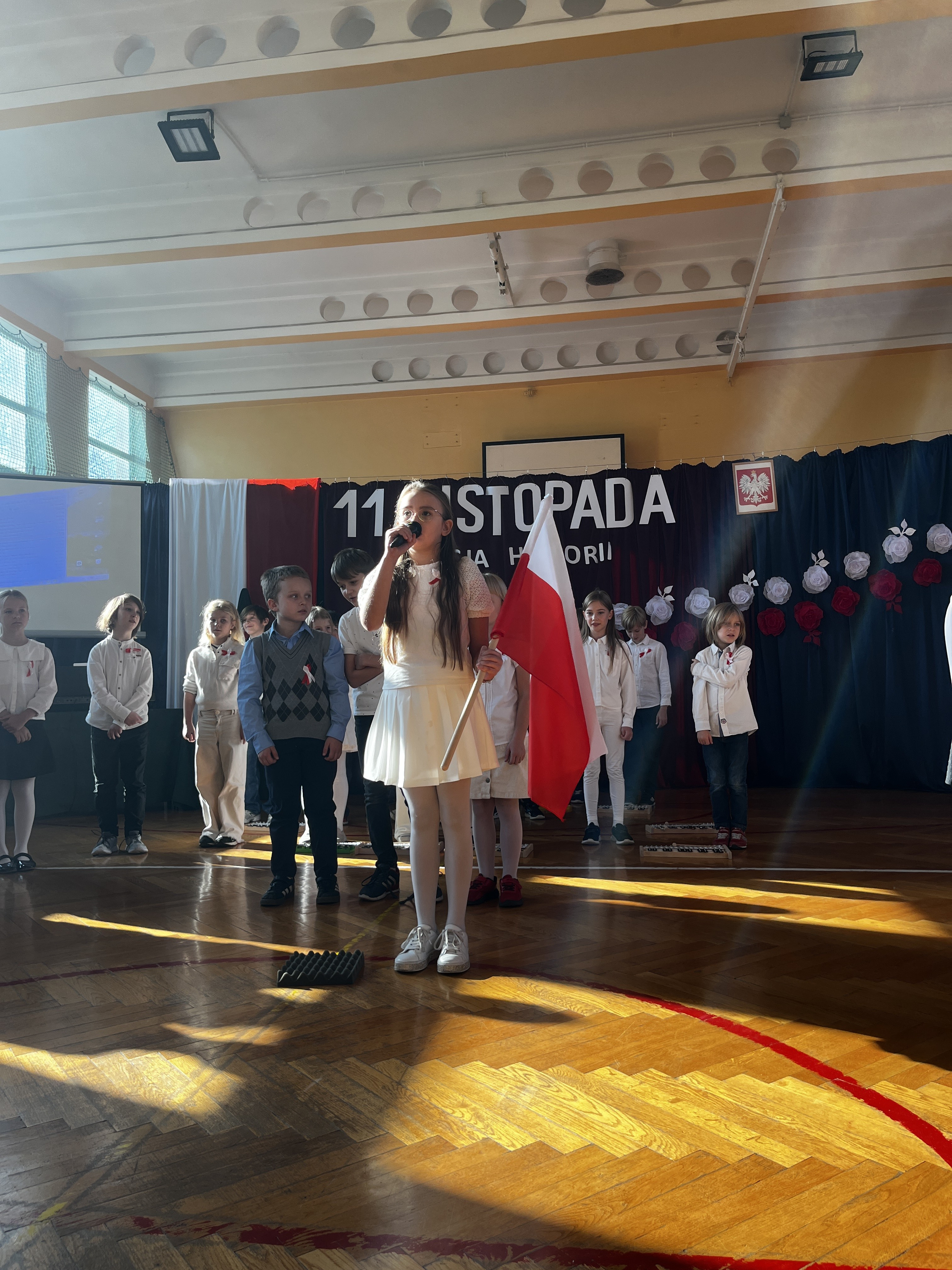 Dziś w szkole odbył się apel z okazji Święta Niepodległości. Młodsze klasy w przepiękny i wzruszający sposób przedstawiły lekcję historii. O 11:1 starsze klasy zaśpiewały Hymn Polski, dołączając się tym sposobem do ogólnopolskiej akcji MEN „Szkoła do hymnu”. Następnie uczniowie klasy VIII przedstawili w krótki sposób burzliwe losy Rzeczpospolitej, a później każda z klas zaśpiewała przygotowany utwór związany ze świętem 11 listopada.