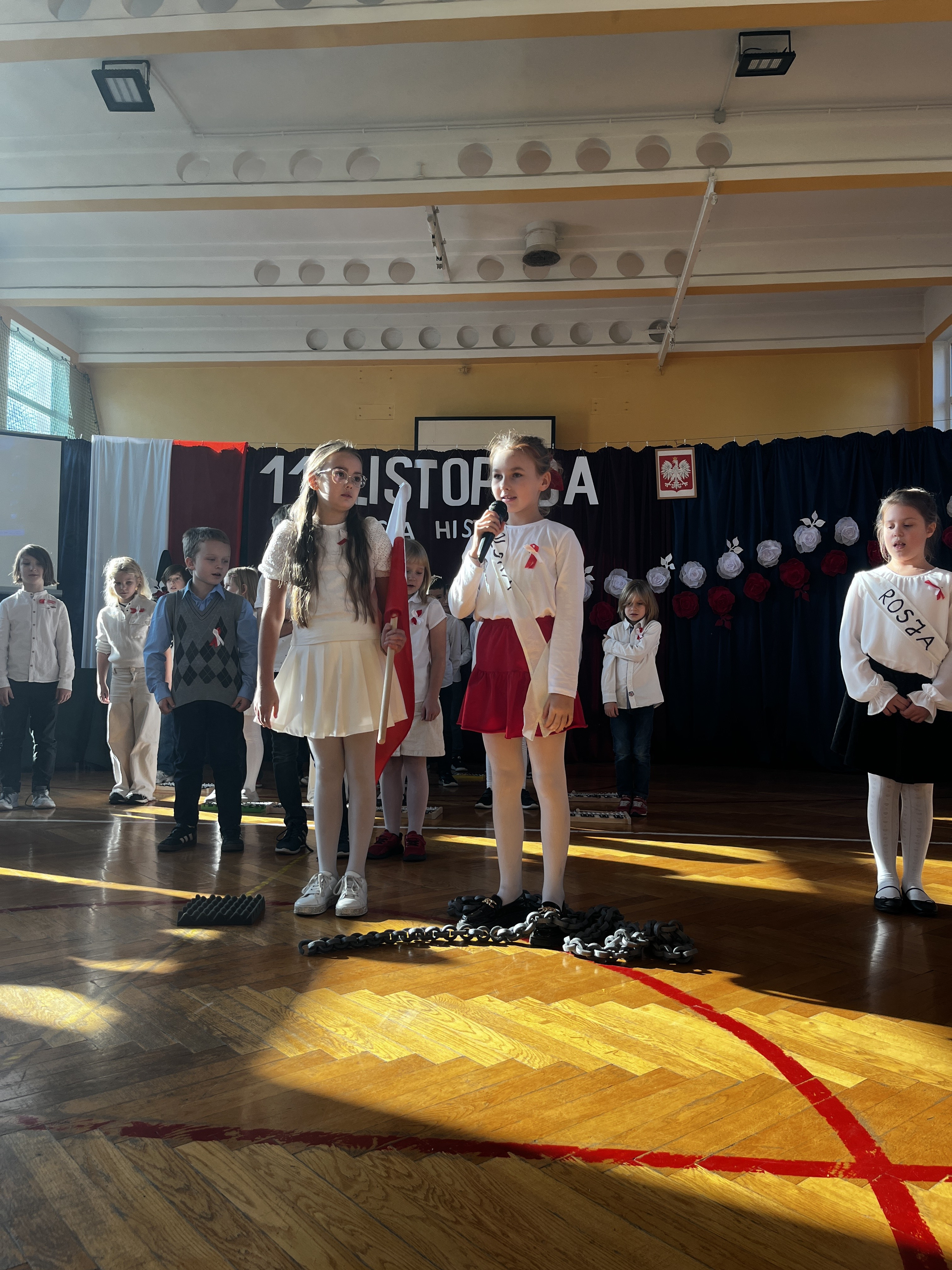 Dziś w szkole odbył się apel z okazji Święta Niepodległości. Młodsze klasy w przepiękny i wzruszający sposób przedstawiły lekcję historii. O 11:1 starsze klasy zaśpiewały Hymn Polski, dołączając się tym sposobem do ogólnopolskiej akcji MEN „Szkoła do hymnu”. Następnie uczniowie klasy VIII przedstawili w krótki sposób burzliwe losy Rzeczpospolitej, a później każda z klas zaśpiewała przygotowany utwór związany ze świętem 11 listopada.