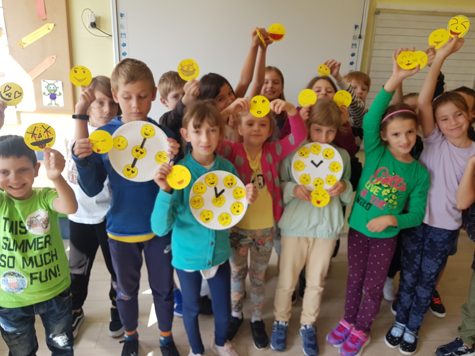 W minionym tygodniu w naszej świetlicy zapoznawaliśmy się z zasadami ruchu drogowego oraz jak bezpiecznie poruszać się po drodze do i ze szkoły. Przypomnieliśmy sobie podstawowe znaki drogowe. Dzięki światowemu Dniu Emotikona, który świętowaliśmy w tym tygodniu, mieliśmy okazję do rozmów o emocjach i ich wyrażaniu. Uczniowie mieli mnóstwo pomysłów na to  w jaki sposób uczcić to nietypowe święto. Piękna wrześniowa aura pozwoliła nam na sportowe aktywności na szkolnym boisku oraz stworzyła przestrzeń do kreatywności, którą dzieci mają niesamowitą. Powstało wiele świetnych prac plastycznych. Zapraszamy do naszej galerii zdjęć.
