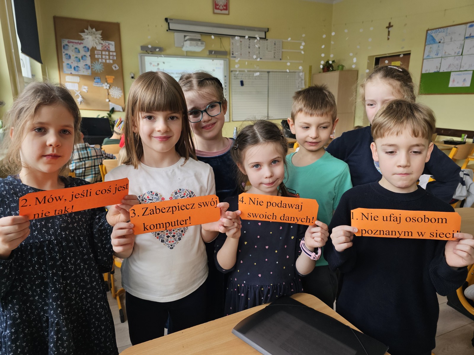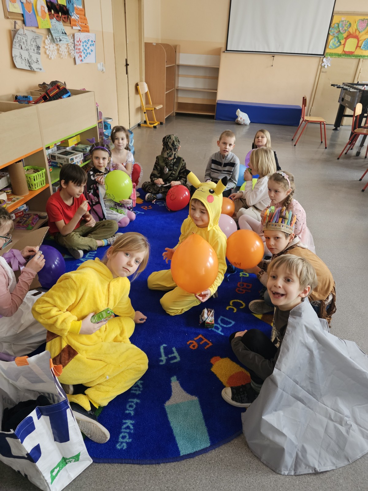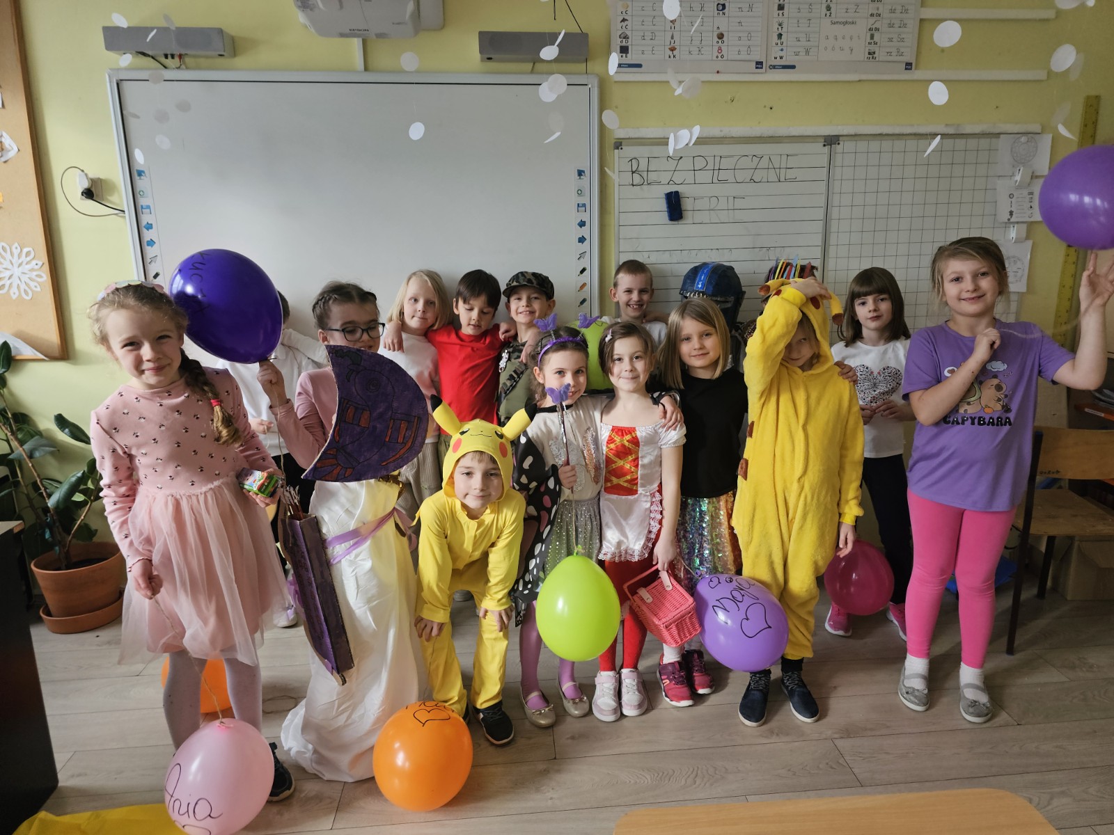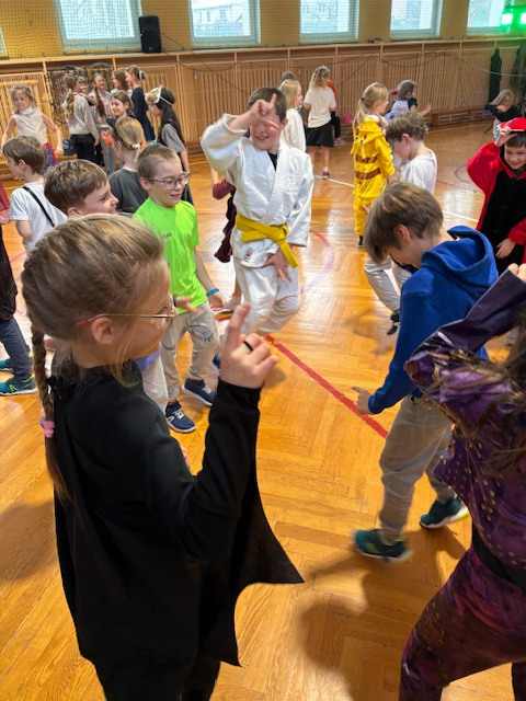 Dzieci w pięknych przebraniach chętnie brały udział w tańcach i wspólnych zabawach prowadzonych przez wodzireja. W kolejnych dniach nie zabrakło również zajęć rozwijających wiedzę i umiejętności uczniów. Rozmawialiśmy na temat danych osobowych, dzieci dowiedziały się, czym są dane osobowe i dlaczego nie należy podawać ich obcym osobom, szczególnie w internecie. Podczas zajęć integracyjnych „Każdy jest wyjątkowy” dzieci uczyły się budowania wspólnoty, współpracy i akceptacji różnic. Wspólnie stworzyliśmy również plakat „5 zasad bezpiecznego internetu”, utrwalając zasady bezpiecznego korzystania z sieci. Rozmawialiśmy z dziećmi również na temat bezpiecznych zimowych zabaw, przypomnieliśmy, że nie wolno wchodzić na zamarznięte zbiorniki wodne. Zapraszamy do obejrzenia galerii zdjęć:)