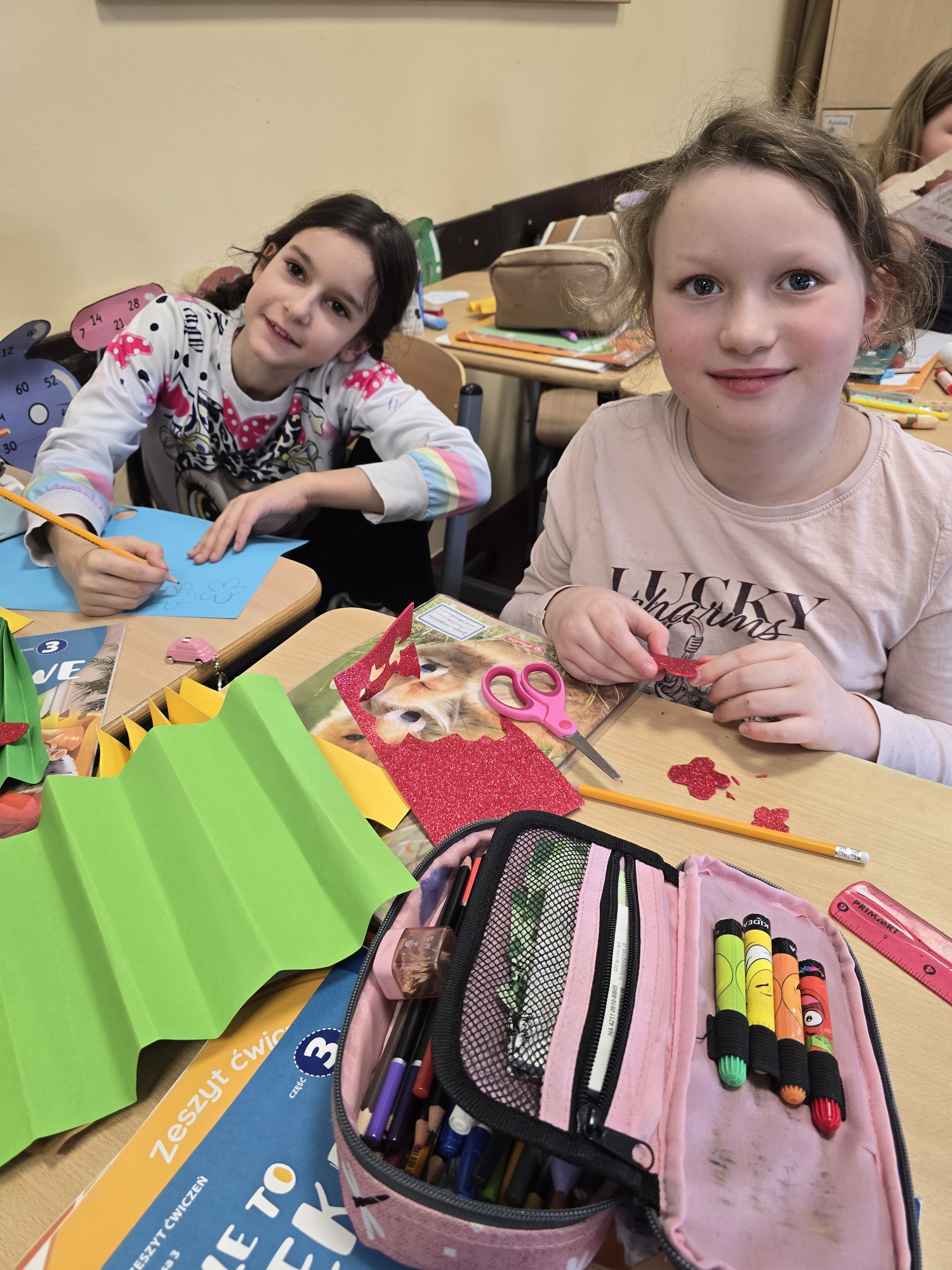 W związku ze zbliżającym się Dniem Kobiet porozmawialiśmy również o „Wielkich Kobietach w Historii”. Dzieci poznały inspirujące postacie, takie jak Marie Curie, Frida Kahlo oraz Amelia Earhart. Rozmawialiśmy o ich dokonaniach i o tym, jak dzięki swojej odwadze i determinacji zmieniły świat. Z tej okazji dzieci przygotowały także kartki i laurki z życzeniami na Dzień Kobiet, wkładając w nie dużo serca i pomysłowości.