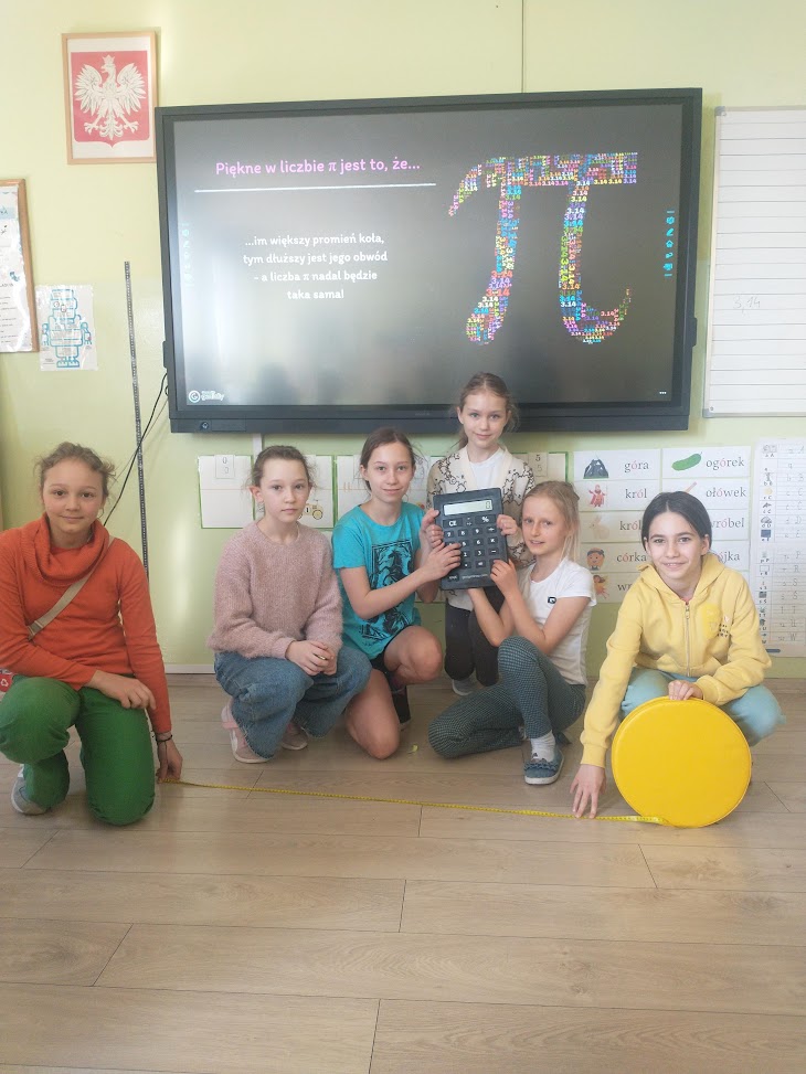 Z okazji Dnia liczby Pi uczennice klasy 4b odwiedziły swoich młodszych kolegów i koleżanki z klasy 1b, aby przybliżyć im istotę tej liczby. Dzieci obejrzały prezentację, wysłuchały wyjaśnień starszych koleżanek i pod ich kierunkiem przeprowadziły odpowiednie pomiary, które pomogły im doświadczalnie zrozumieć, czym jest liczba Pi. Dziękujemy uczennicom klasy 4b za ciekawe zajęcia i inspirację do dalszego poznawania tajników matematyki.