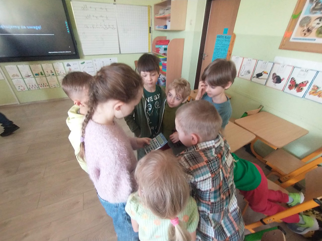 Z okazji Dnia liczby Pi uczennice klasy 4b odwiedziły swoich młodszych kolegów i koleżanki z klasy 1b, aby przybliżyć im istotę tej liczby. Dzieci obejrzały prezentację, wysłuchały wyjaśnień starszych koleżanek i pod ich kierunkiem przeprowadziły odpowiednie pomiary, które pomogły im doświadczalnie zrozumieć, czym jest liczba Pi. Dziękujemy uczennicom klasy 4b za ciekawe zajęcia i inspirację do dalszego poznawania tajników matematyki.