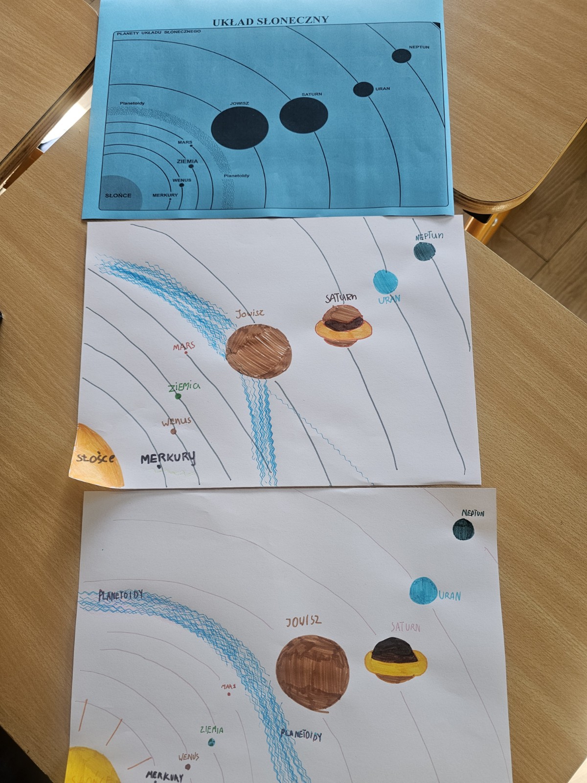 Szczególną uwagę poświęciliśmy naszej planecie – Ziemi, trzeciej od Słońca. Rozmawialiśmy o tym, co czyni ją wyjątkową i dlaczego to właśnie tu rozwinęło się życie. Uczniowie zrozumieli, jak ważne jest położenie Ziemi w Układzie Słonecznym – nie za blisko i nie za daleko od Słońca, w tzw. strefie życia.