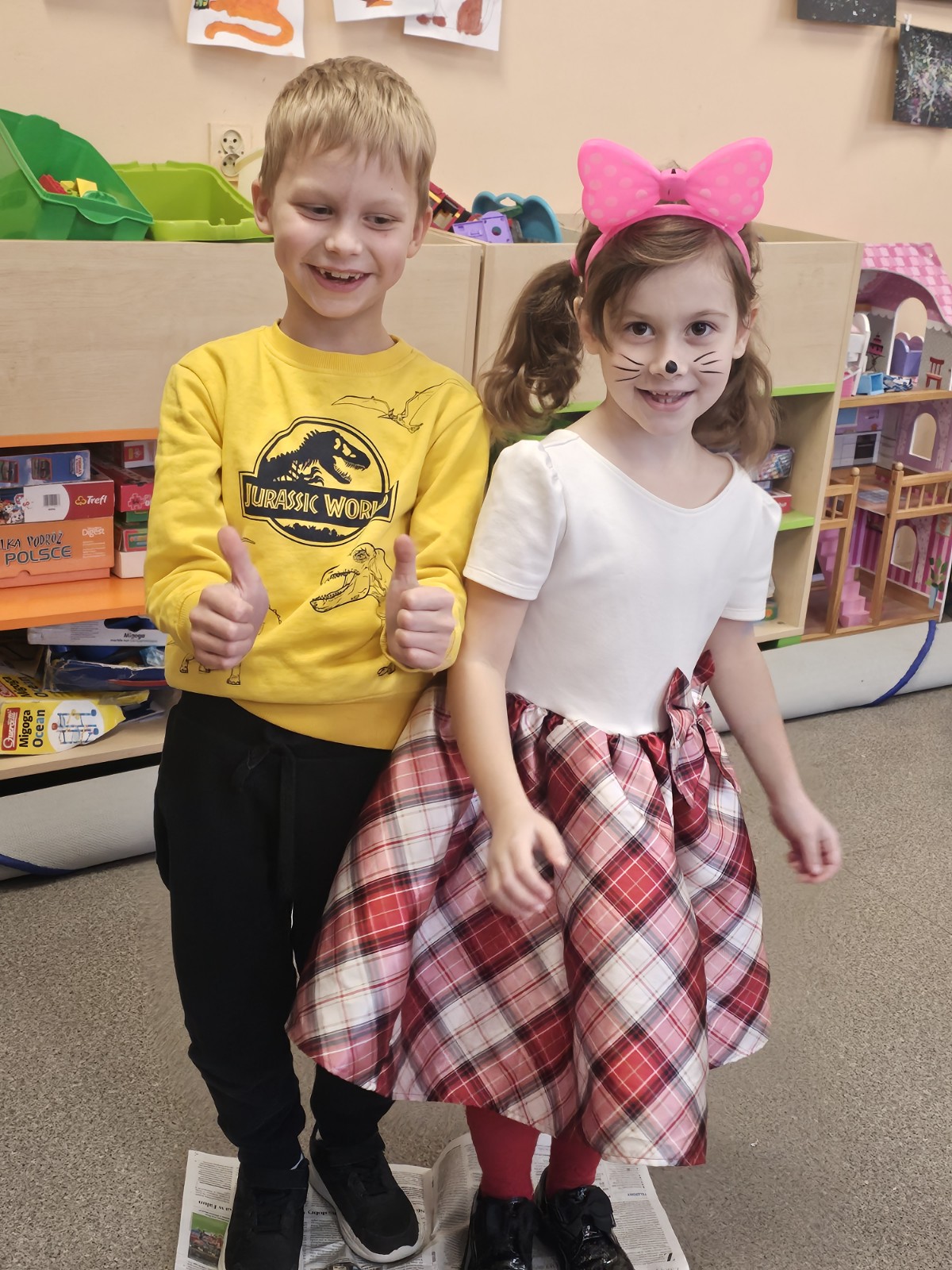 W minionym tygodniu w świetlicy realizowaliśmy tematykę związaną z kosmosem🪐. Dzieci oglądały ilustracje przedstawiające wynalazki i technologie, które powstały dzięki badaniom kosmicznym, a także rozmawiały o tym, jak odkrycia naukowe wpływają na nasze codzienne życie na Ziemi. Poznaliśmy dwóch Polaków, którzy polecieli w kosmos: Mirosława Hermaszewskiego i Sławosza Uznańskiego. Podczas zajęć czytelniczych poznaliśmy fragmenty tekstu opisującego życie na stacji kosmicznej. Dzieci z zainteresowaniem słuchały o tym, jak astronauci wykonują codzienne czynności w stanie nieważkości. Obejrzeliśmy również film edukacyjny „Paxi bada Księżyc”, który przybliżył wygląd i budowę Księżyca🌙. W czasie rozmów o kosmicznych ciekawostkach dzieci dowiedziały się, czym jest NASA, z czego składa się Układ Słoneczny oraz dlaczego Księżyc zmienia swój kształt. Poznawały fazy Księżyca i próbowały je przedstawić na ilustracjach. Nie zabrakło także aktywności ruchowych podczas zabawy „Start rakiety”, w której dzieci odliczały i wykonywały skok w kosmos. Odbyła się również świetlicowa zabawa andrzejkowa z muzyką, balonami i zabawami integracyjnymi🎈. W ramach zajęć plastycznych uczniowie projektowali własne pojazdy kosmiczne z materiałów recyklingowych🚀. To był tydzień pełen wiedzy, aktywności i twórczej zabawy!