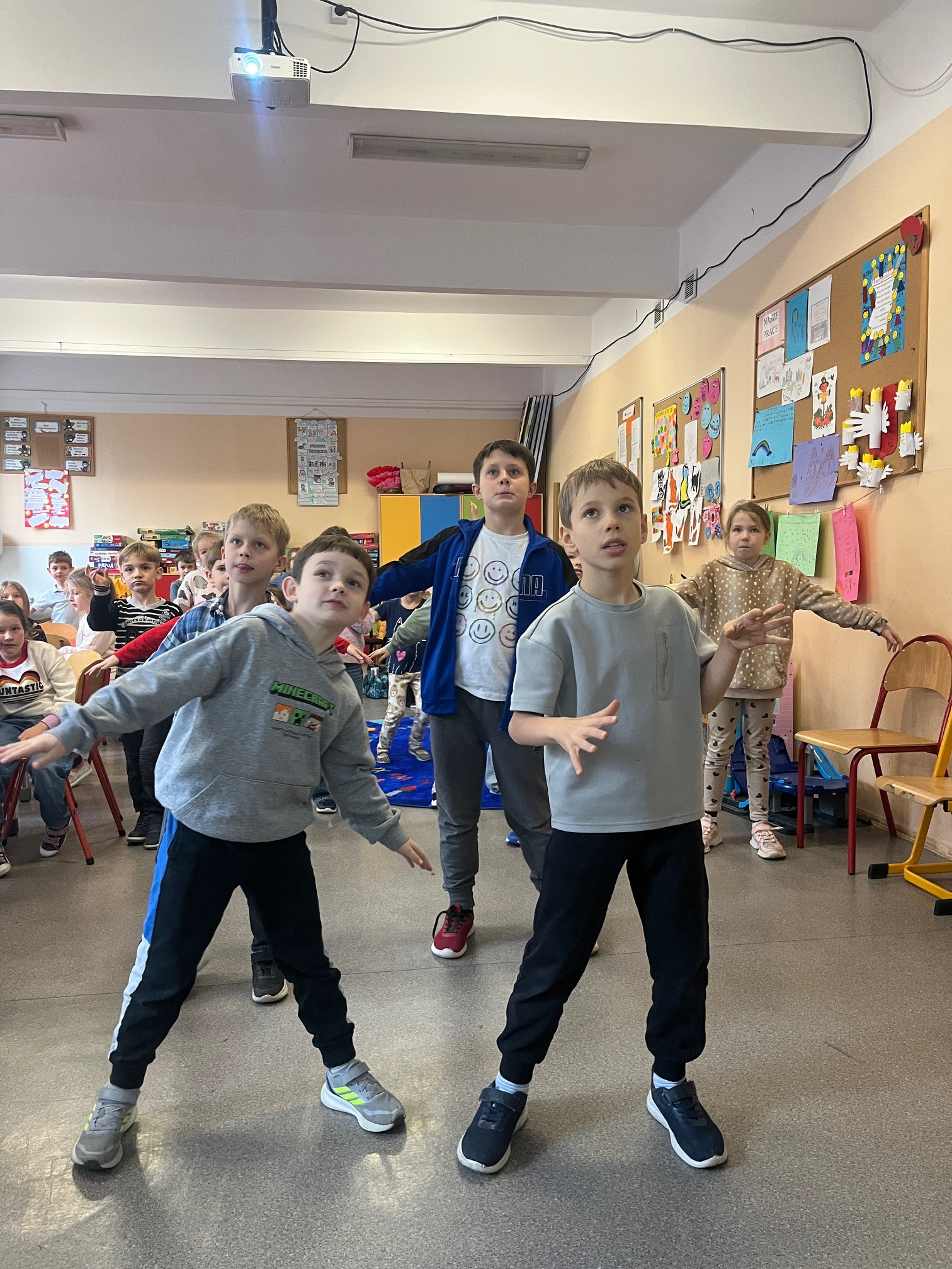 W ubiegłym tygodniu w świetlicy realizowaliśmy tematy związane z kulturą bycia, życzliwością i prawami dziecka, a także obchodziliśmy Dzień Czarnego Kota 🐈‍⬛. Dzieci przypominały sobie zwroty grzecznościowe, rozmawiały o uprzejmości i wpływie słów na relacje międzyludzkie. Z okazji Dnia Czarnego Kota odbyła się rozmowa pt. „Czy czarny kot naprawdę przynosi pecha?”, podczas której dzieci poznawały ciekawostki o kotach, obalały przesądy i zastanawiały się nad tym, skąd biorą się mity i stereotypy. W nawiązaniu do Konwencji Praw Dziecka obejrzeliśmy krótki film UNICEF i rozmawialiśmy o podstawowych prawach dziecka – m.in. o prawie do zabawy, nauki, bezpieczeństwa, miłości i odpoczynku. Powstały plakaty „Mam prawo do…”, na którym uczniowie zilustrowali wybrane przez siebie prawa. W ramach czytania na dywanie dzieci poznały opowiadania rozwijające postawy tolerancji i akceptacji, m.in. „Grzyb Borowik”, „Pajączek” oraz „Julka walczy o swoje prawa”. Podczas zajęć plastycznych uczniowie projektowali swoje wersje „Magicznego kota” 🎨. Korzystali z papieru kolorowego, farb, kredek i flamastrów, tworząc bardzo różnorodne prace — pojawiły się koty domowe, zaczarowane, a nawet koty z kosmosu. Nie zabrakło także aktywności ruchowych – zabawy „Kot i myszki”, berek, murarz i dyrygent oraz gier w kącikach zainteresowań (puzzle, planszówki, konstrukcje). Tydzień pełen życzliwości, rozmów, kreatywności i wspólnej zabawy ❤️
