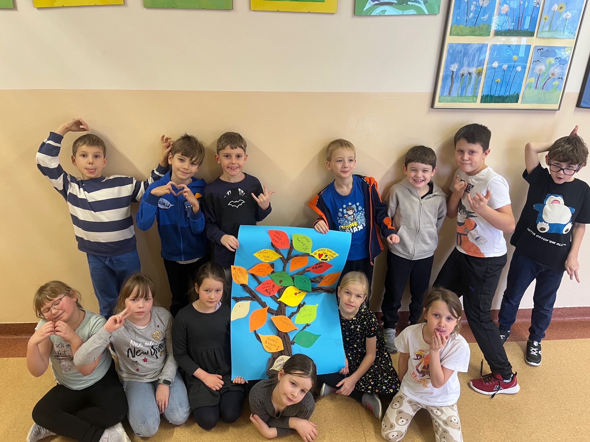W ubiegłym tygodniu w świetlicy realizowaliśmy tematy związane z kulturą bycia, życzliwością i prawami dziecka, a także obchodziliśmy Dzień Czarnego Kota 🐈‍⬛. Dzieci przypominały sobie zwroty grzecznościowe, rozmawiały o uprzejmości i wpływie słów na relacje międzyludzkie. Z okazji Dnia Czarnego Kota odbyła się rozmowa pt. „Czy czarny kot naprawdę przynosi pecha?”, podczas której dzieci poznawały ciekawostki o kotach, obalały przesądy i zastanawiały się nad tym, skąd biorą się mity i stereotypy. W nawiązaniu do Konwencji Praw Dziecka obejrzeliśmy krótki film UNICEF i rozmawialiśmy o podstawowych prawach dziecka – m.in. o prawie do zabawy, nauki, bezpieczeństwa, miłości i odpoczynku. Powstały plakaty „Mam prawo do…”, na którym uczniowie zilustrowali wybrane przez siebie prawa. W ramach czytania na dywanie dzieci poznały opowiadania rozwijające postawy tolerancji i akceptacji, m.in. „Grzyb Borowik”, „Pajączek” oraz „Julka walczy o swoje prawa”. Podczas zajęć plastycznych uczniowie projektowali swoje wersje „Magicznego kota” 🎨. Korzystali z papieru kolorowego, farb, kredek i flamastrów, tworząc bardzo różnorodne prace — pojawiły się koty domowe, zaczarowane, a nawet koty z kosmosu. Nie zabrakło także aktywności ruchowych – zabawy „Kot i myszki”, berek, murarz i dyrygent oraz gier w kącikach zainteresowań (puzzle, planszówki, konstrukcje). Tydzień pełen życzliwości, rozmów, kreatywności i wspólnej zabawy ❤️